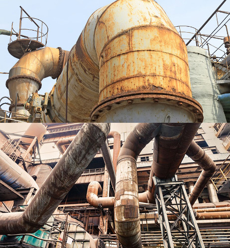 另外,處于腐蝕性環境中的設備也需要進行防腐蝕包覆,避免設備被侵襲腐蝕。常見的腐蝕性介質有酸性物質如HCl、HF、醋酸、硫酸、Cl+、SO2等,堿性物質如NaOH、KOH、石灰、氨氣氨水,以及各種鹽類。