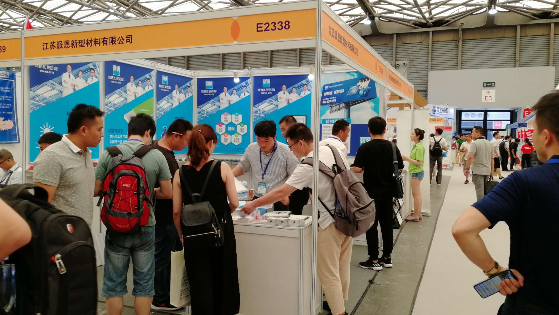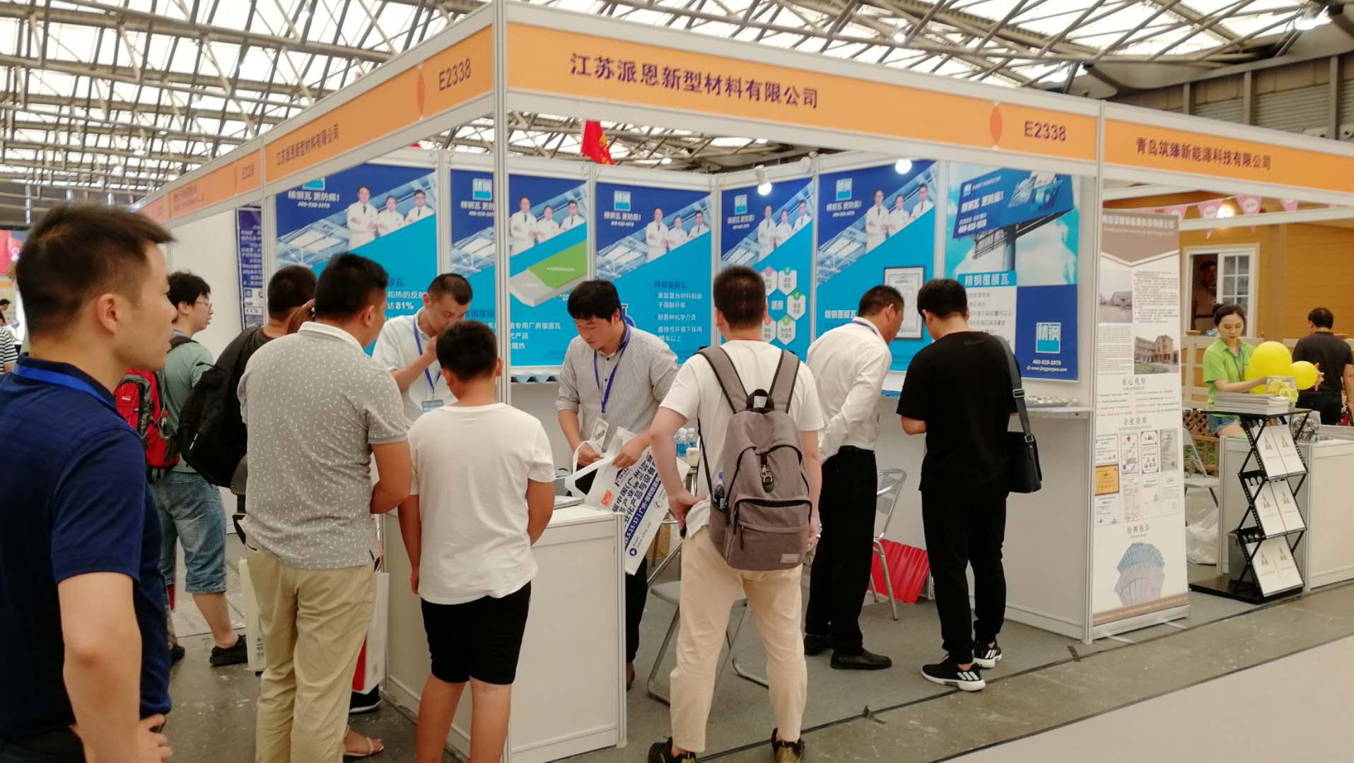 展會進行期間,從全國各地前來參觀的客戶絡繹不絕,其中有知名設計院的設計師,建筑工程公司的高層領導,屋面建筑材料的業內同仁,還有前來考察合作項目的外國友人。大家對江蘇派恩的精鋼覆膜瓦和各式樣品好奇不已,紛紛上前圍觀,認真翻閱宣傳冊資料,仔細聆聽宣傳介紹,詳細咨詢關于精鋼覆膜瓦的材料組成、產品性能以及安裝施工等具體事宜,江蘇派恩的現場工作人員一一為客戶熱情講細地解答。精鋼覆膜瓦以其優良的品質、卓越的性能受到了客戶的一致肯定與高度評價。